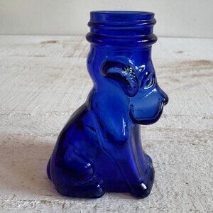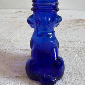 Vintage Cobalt Blue Glass Dog Candy Dispenser Bottle