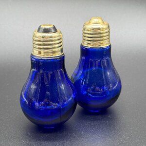 Vintage Cobalt Blue Glass Lightbulbs Salt and Pepper Shakers