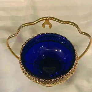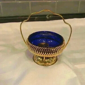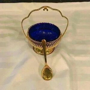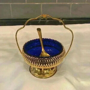 Vintage Cobalt Blue Glass and Silver Plated Confiture Bowl with Spoon