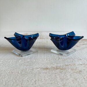 Vintage Cobalt Blue Hard Plastic Formed Candlestick Holders