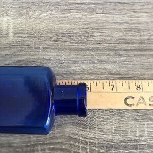 Elegant vintage blue glass bottle. Perfect for decor or collection. Unmarked bottle. Bubbles inside the glass indicates this is an older bottle (likely early 20th century).