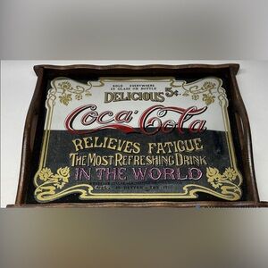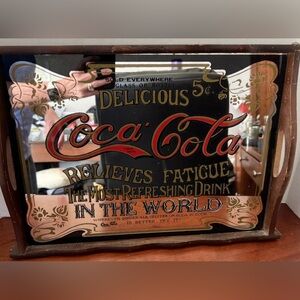 1970’s Vintage Coca Cola Delicious 5 Cents Relieves Fatigue Refreshing Drink Mirror Tray , Rare