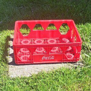 A plastic Coca Cola plastic crate; I have 4 available. They are all in good shape and what might be of interest to an American collector is that they are bilingual in both French & English. The 2 long sides have "Enjoy/Savourez Coca-Cola Tade Mark Registered Marque Depose" on them.
