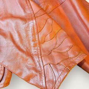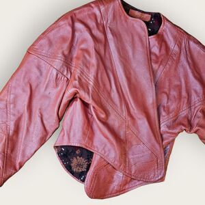 Vintage Coco Tomas Burnt Orange Coral Big Shoulder Cropped Leather Jacket