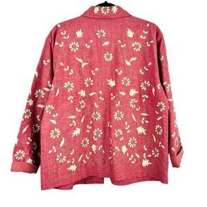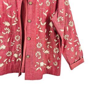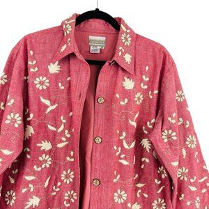 Vintage Cold Water Creek Pink Floral Cotton Button Front Embroidered Shirt