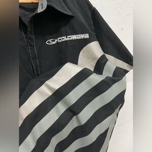 Y2K Coldwave Millenium rave button down shirt in good condition, size L. Minor overall wear, some loose stitching (please see photos for a more detailed look).
