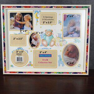Mat Size: 11x14 with 8 photo openings (approximate sizes – actual viewable area may be slightly reduced by mat shape):