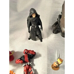 Vintage Collectable Action Figure Lot Of 10 featuring WWF, Ren and Stimpy, Star Wars, and Alien characters. This unique collection includes iconic figures from various franchises, adding a nostalgic touch to any collector's display. Perfect for fans of action figures and classic movies, this lot offers a diverse range of characters to enhance your collection.