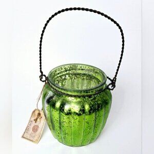 Vintage Collection Mercury Glass Lantern Hanging Tea Light Holder Green & Silver