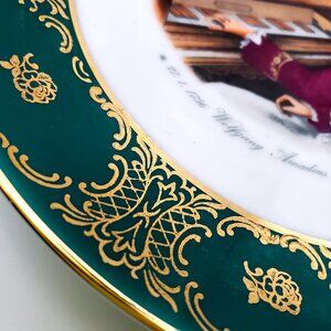 Vintage Collector's Plate MOZART Image Gold Brocade Trim Dresser Jewellery Tray