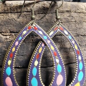 Colours - Purple background and oval pattern in yellow, blue, pink orange, and red.