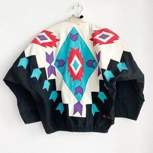 Vintage Colourful Southwestern Print Batwing Sleeve Cotton Patchwork Jacket XL.