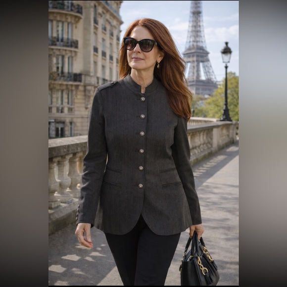 Stylish grey military style blazer with button details. PTP- 22”. In pristine condition.