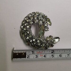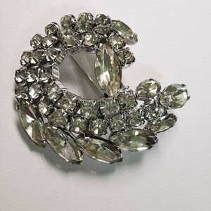 A true statement brooch with large and small marquis rhinestones set in a swirl pattern with round cut stones.