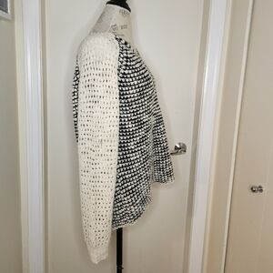 Cozy Black & Cream Loose Eyelet Knit long sleeve Wide Neck Pullover Sweater, by Le Temp des Cerises.