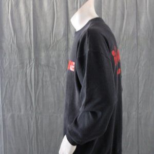 This sweater is in good condition for it's age. There are no rips, snags or tears to the sweater. There are no stains on the sweater. The front graphic on the sweater is clean without damage. The back graphic on the sweater does have distressing. Please see images for your reference.