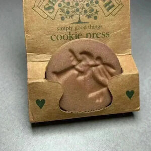 This vintage cookie press is ready to take on your holiday baking. New in the package and never used, it's sweet trumpeting angel will leave the most adorable images on your favorite treats. Bonus - it's super easy for the kids to partake!