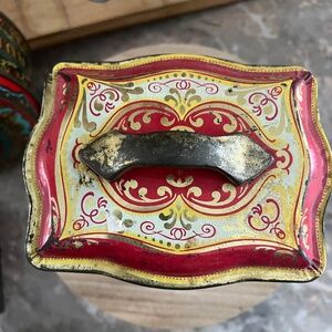 Vintage collectible metal tin 6 inches x 5 inches x 4 inches. From a smoke free home.