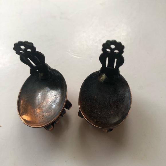 Elegant vintage clip-on earrings in a shiny copper finish. Perfect for adding a touch of retro style to any outfit especially if you love music or play an instrument
