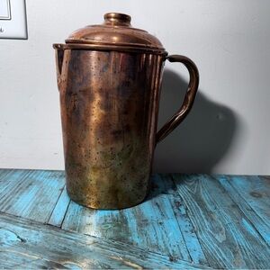Vintage Copper Jug With Lid Rustic Farmhouse Decor