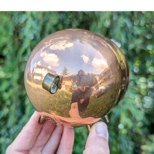 A little copper piggy bank with brass detailing for the ears, eyes, tail and feet. Glossy copper with the original Coppercraft guild sticker to the back. Has a coin slot on top and a screw in the bottom to open the piggy bank up.