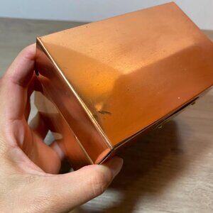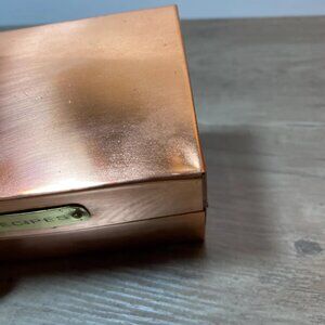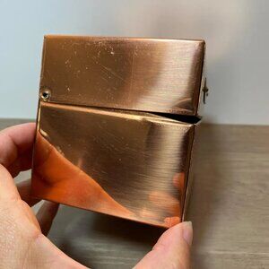 Vintage Copper Recipe Box & Brass Tag No Cards Farmhouse Kitchen Decor