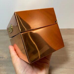 This vintage copper recipe box features a brass tag and brings rustic charm to any kitchen. While it doesn’t include recipe cards, it’s perfect for storing your own recipes, notes, or small keepsakes. A lovely farmhouse-style accent for collectors or anyone looking to add a touch of vintage warmth to their kitchen.