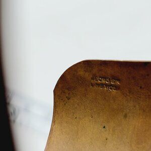 Beautiful artisan-made cuff bracelet crafted from warm-toned copper and accented with a brass panther design inlaid with shimmering abalone shell. The mix of metals and iridescent shell gives this piece a striking, earthy elegance. Marked “Hecho en Mexico” on the inside.
