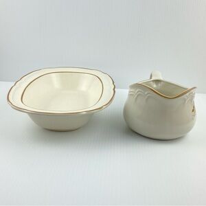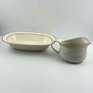Vintage Cordella Stoneware Vegetable Dish and Gravy Boat Burnet Pattern