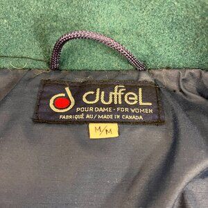 Vintage corduroy bomber jacket with elbow patches in a great shade of teal / turquoise. Minor wear, no damage. Brand is Duffel, made in Canada. Tag says size Medium but it definitely fits like a small. Pit to pit 22.5", collar to hem 25".
