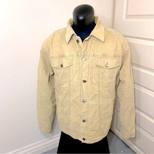 Vintage Corduroy Trucker Jacket Sherpa limed Men Sz XL Beige Preppy Minimalist