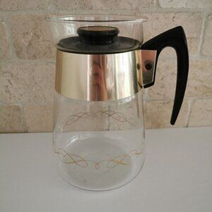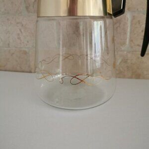 Vintage Corning MCM Coffee Carafe 6-Cup, Black Gold Scroll Pattern Kitchen Decor
