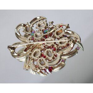 For your consideration is a vintage Coro silver tone brooch with red glass accentuated with little rhinestones, circa 1960s.