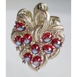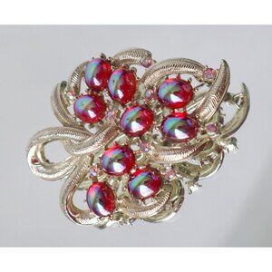 Vintage Coro Brooch Pin Mid Century Modern Red Glass Silver Tone Grannycore