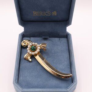 Shamshir sword adorned with faux pearls and green crystal. Coro signature on back. Some very light scuffs.