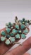 Silver-tone with turquoise enamel petals and aurora borealis rhinestone centers. Lovely mid-century design, c.1950s–60s. Some age wear to enamel. Pin clasp works wel