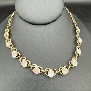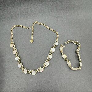 Vintage Coro Set Mother of Pearl Chain Link Bracelet and Choker Necklace