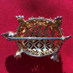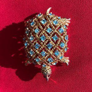 Coro Jewelry is most noted for its collection from the 1930s to the 1950s. Its great success was due to the quality of their designs, the affordability of the pieces and the appeal to a wide range of consumers. Stunning vintage statement brooch with turquoise and red gems. Authentic brooch signed Coro on back. Rollover clasp very secure.