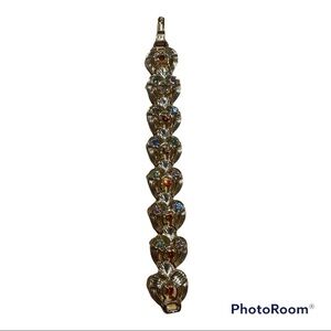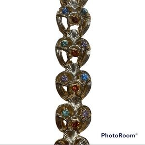Excellent vintage condition. Gold plated Coro bracelet with stone embellishments. A very beautiful peice. Perfect for laying or on its own. Clap closure.