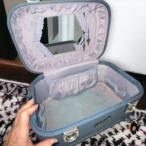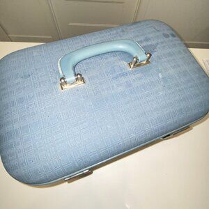 Vintage Cosmetic Toiletries Travel Carry On Suitcase Blue Handle by Carson