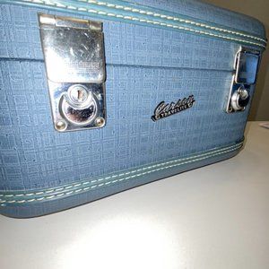 Vintage Cosmetic Toiletries Travel Suitcase Carry On Bag Blue Handle by Carson Travelite