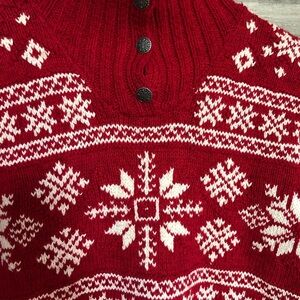 Vintage Cottagecore Red Chunky Knit Festive Snowflake Turtleneck Sweater Small