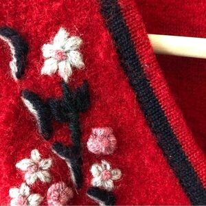 Vintage Red Embroidered Floral Wool Cozy Cardigan Small