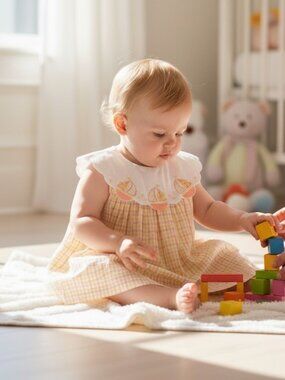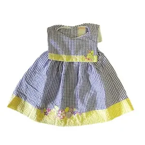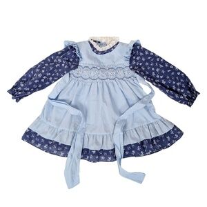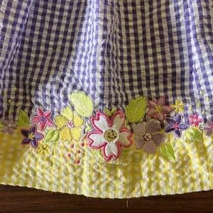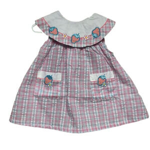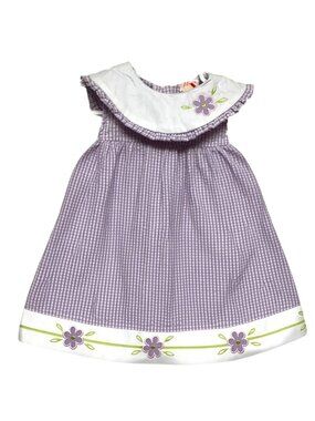 Vintage Cotton Toddler Dress Yellow Purple Floral Gingham Peter Pan Collar NEW