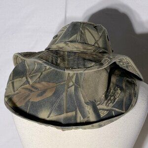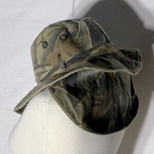 Vintage Country Leather Woodlands Camo Booney Wanderer Bucket Hat W Neck Shield