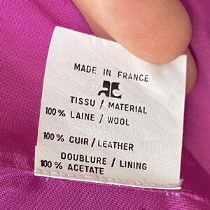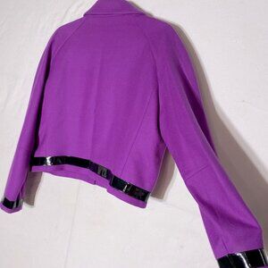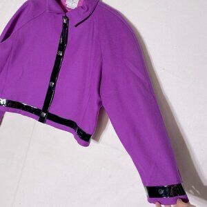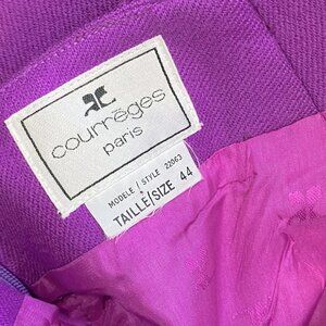 Vintage Courrèges Paris Purple Wool Skirt Blazer Set With Patent Leather Trim 44