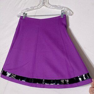 Great vintage condition. One super tiny light coloured dot on right chest area and one tiny pull on right shoulder blade area. There’s also another super tiny pull shown in pics but after searching for it to describe here, I couldn’t find it again. No other signs of wear. Super cute set. Bright purple with black patent leather trim. Size 44, see measurements in pics.