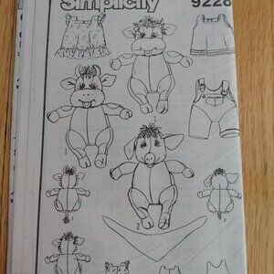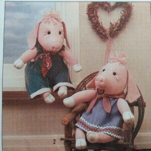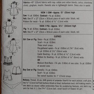 Vintage Cow Pig Dolls Clothes Sewing Pattern Country Farmhouse Decor