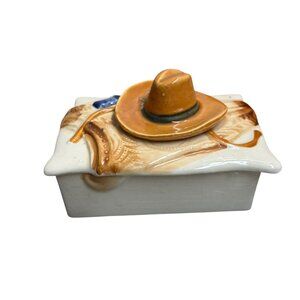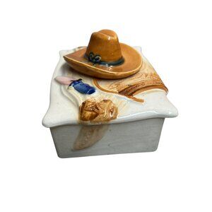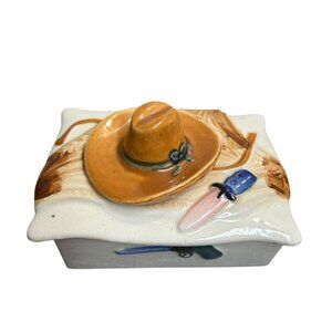 Vintage Cowboy Hat Gun Knife Ceramic Trinket Box