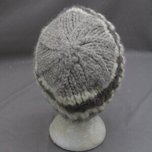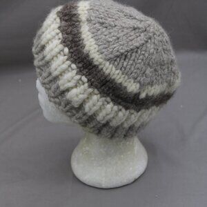 Up for sale is a vintage Cowichan toque. It has a grey base colour with wrapping brown and white stripes woven in the lower portion. What a great toque do not miss out on it.